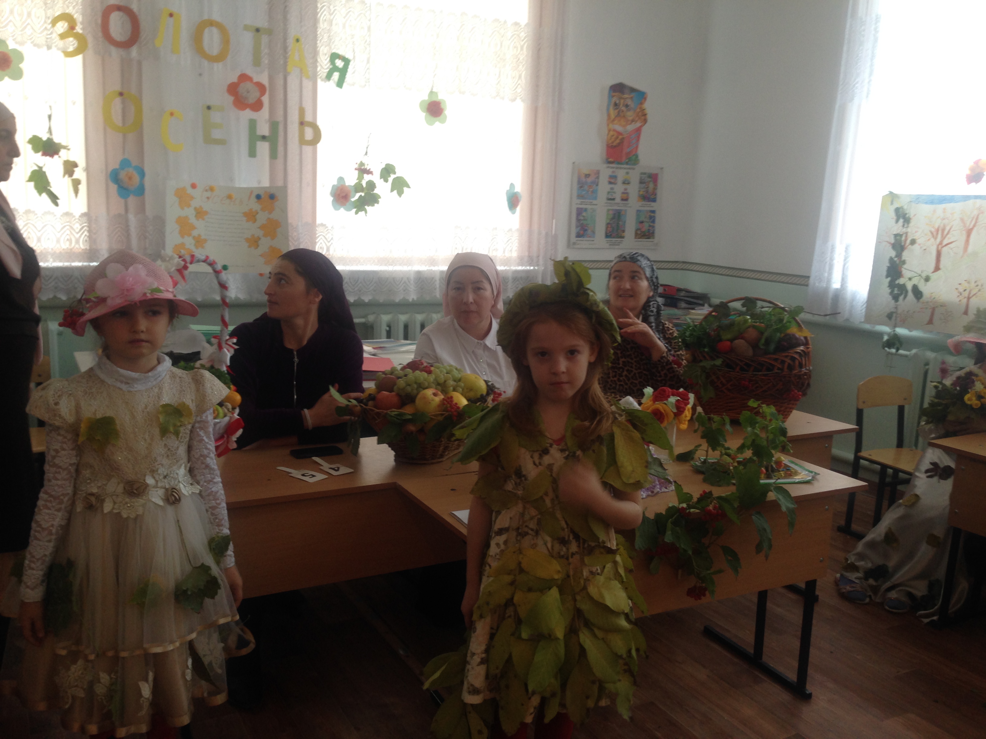 Все учащиеся приняли активное участие на мероприятии. В ярких красочных костюмах дети пели песни, читали стихи. демонстрировали осенние костюмы. Прозвучали загадки про осень, фрукты, овощи, и лесных зверей, что особенно понравилось учащимся 1-х классов. Мероприятие прошло на хорошем уровне, в атмосфере праздничного настроения. После выступлений жюри присудила места. Первое место в мероприятии заняли уч-ся 2 класса (учитель Альмурзаева К.В.), второе место заняли уч-ся 3-го класса (учитель Начхоева Х.В.), третье место присудили уч-ся 4-го класса (учитель Иналова П.А.). Все участники были награждены грамотами. Закончилось мероприятие праздничным концертом.