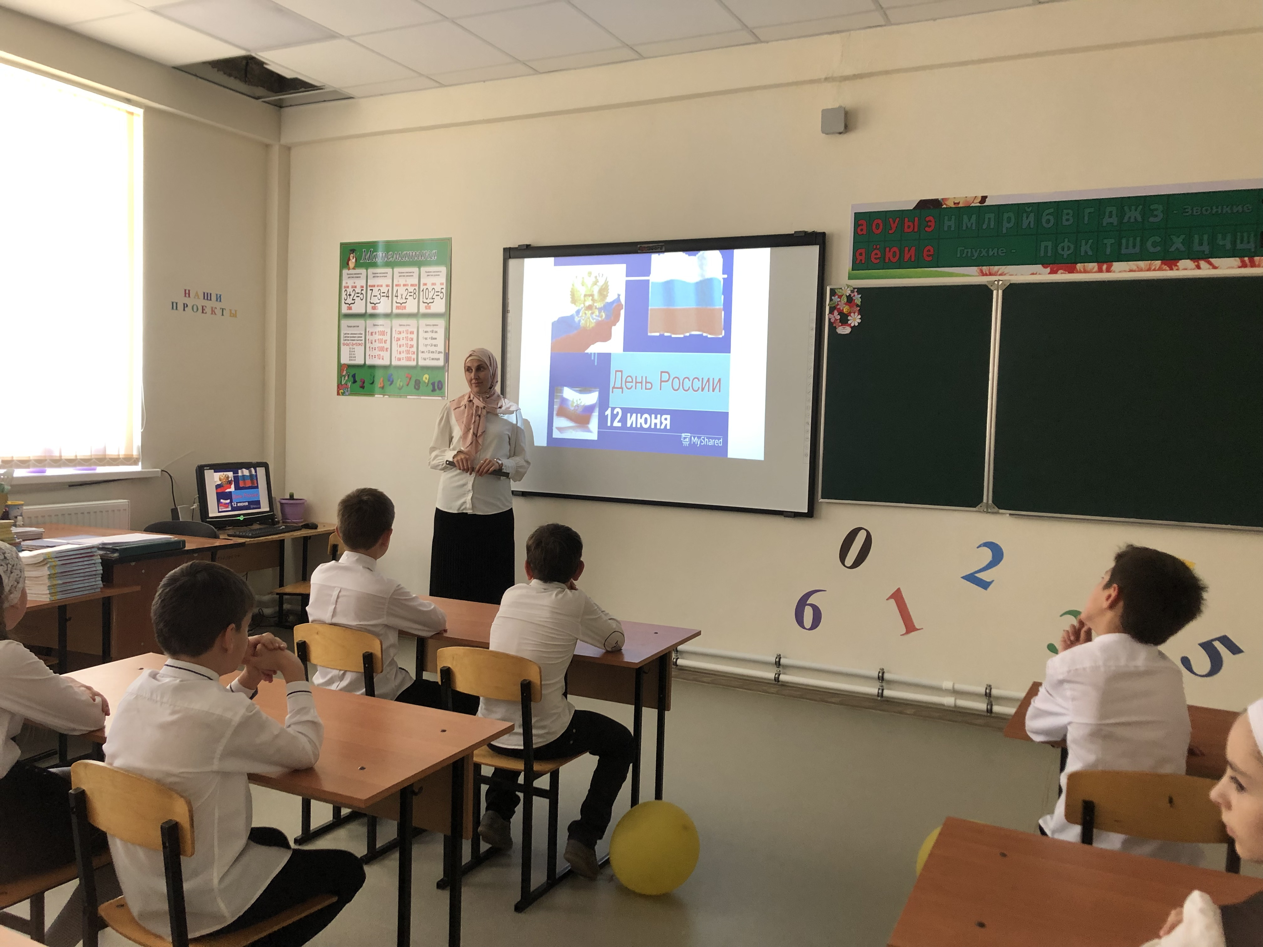 27 мая в МБОУ "НОШ с.Серноводское" прошли тематические классные часы посвящённые Дню России. Классные часы начались с гимна РФ. Учащимся было рассказано о возникновении этого праздника, о символике РФ, (о двухглавом орле, о бело-сине-крассном флаге, о гимне).