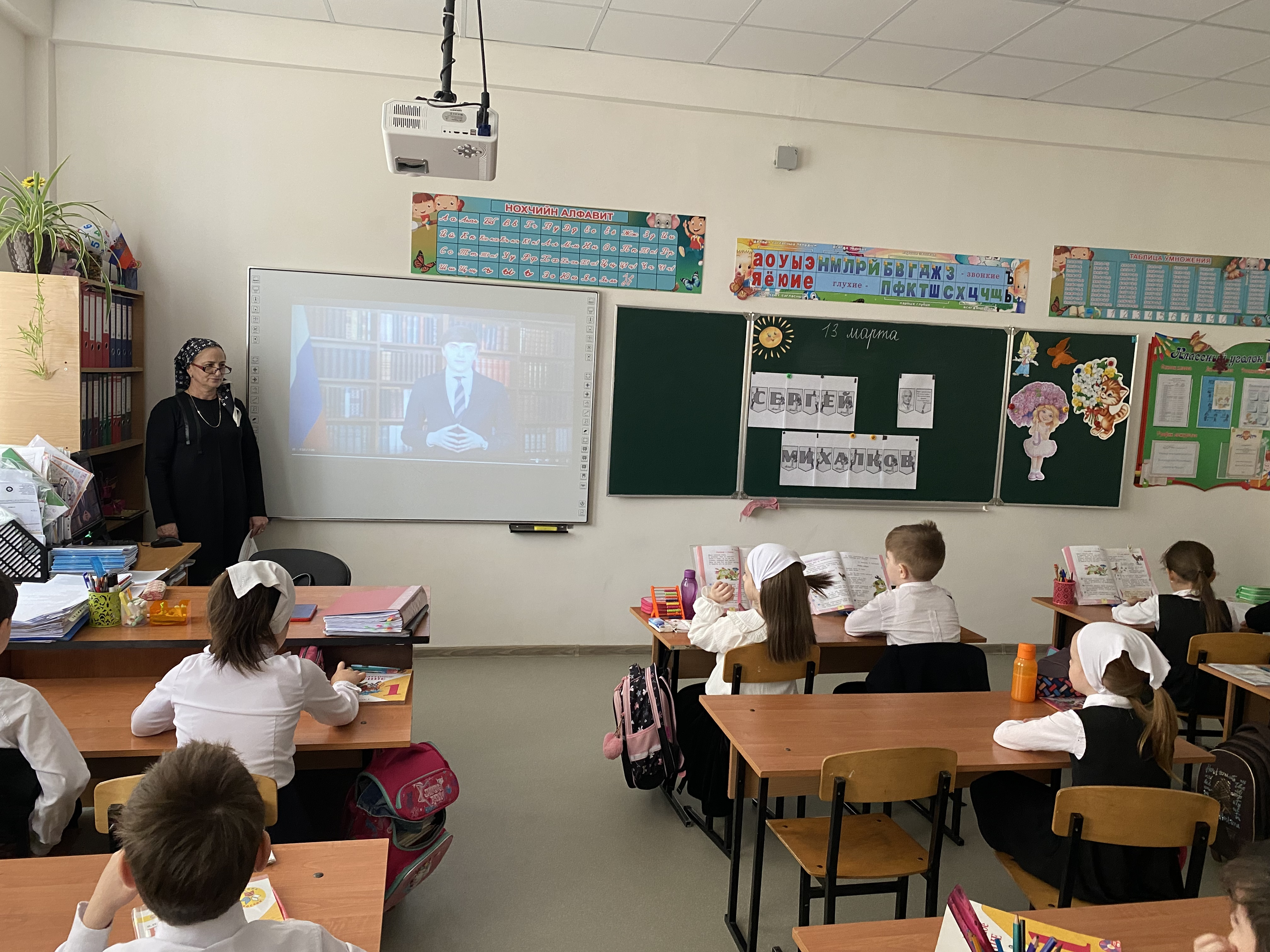 Почетное право поднять Государственные флаги РФ и ЧР предоставляется 4 классу..