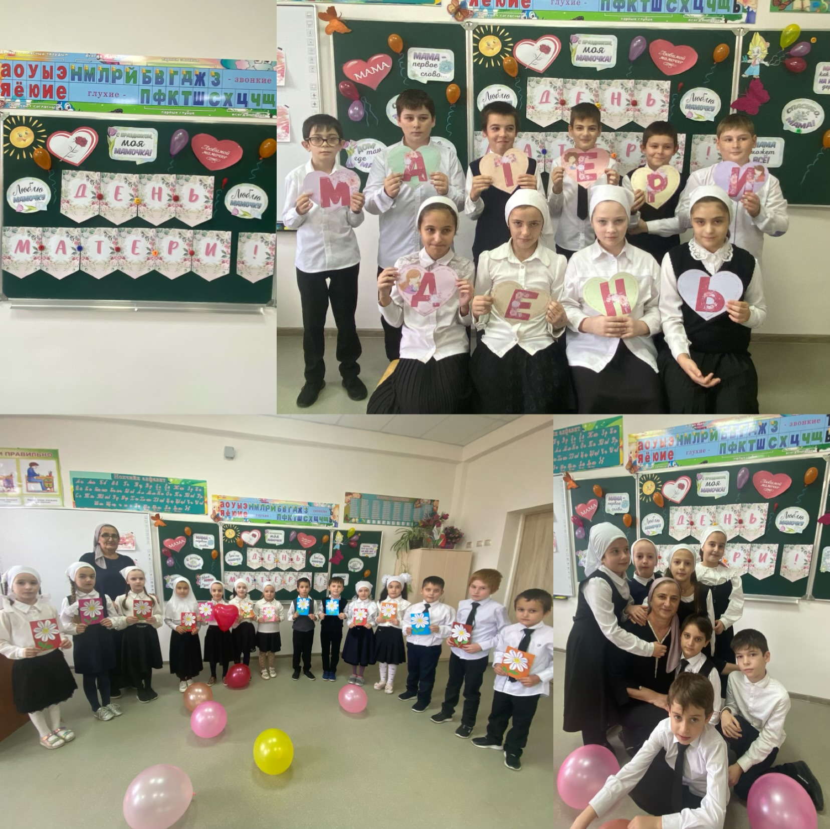 В связи с этим, в начальных классах по традиции, классные руководители совместно с воспитателями приготовили праздничные мероприятия. Ребята узнавали об истории праздника, учили стихи, песни. Участвовали в инсценировках, изготавливали поздравительные открытки для мам. Во всех классах царила праздничная, теплая атмосфера.