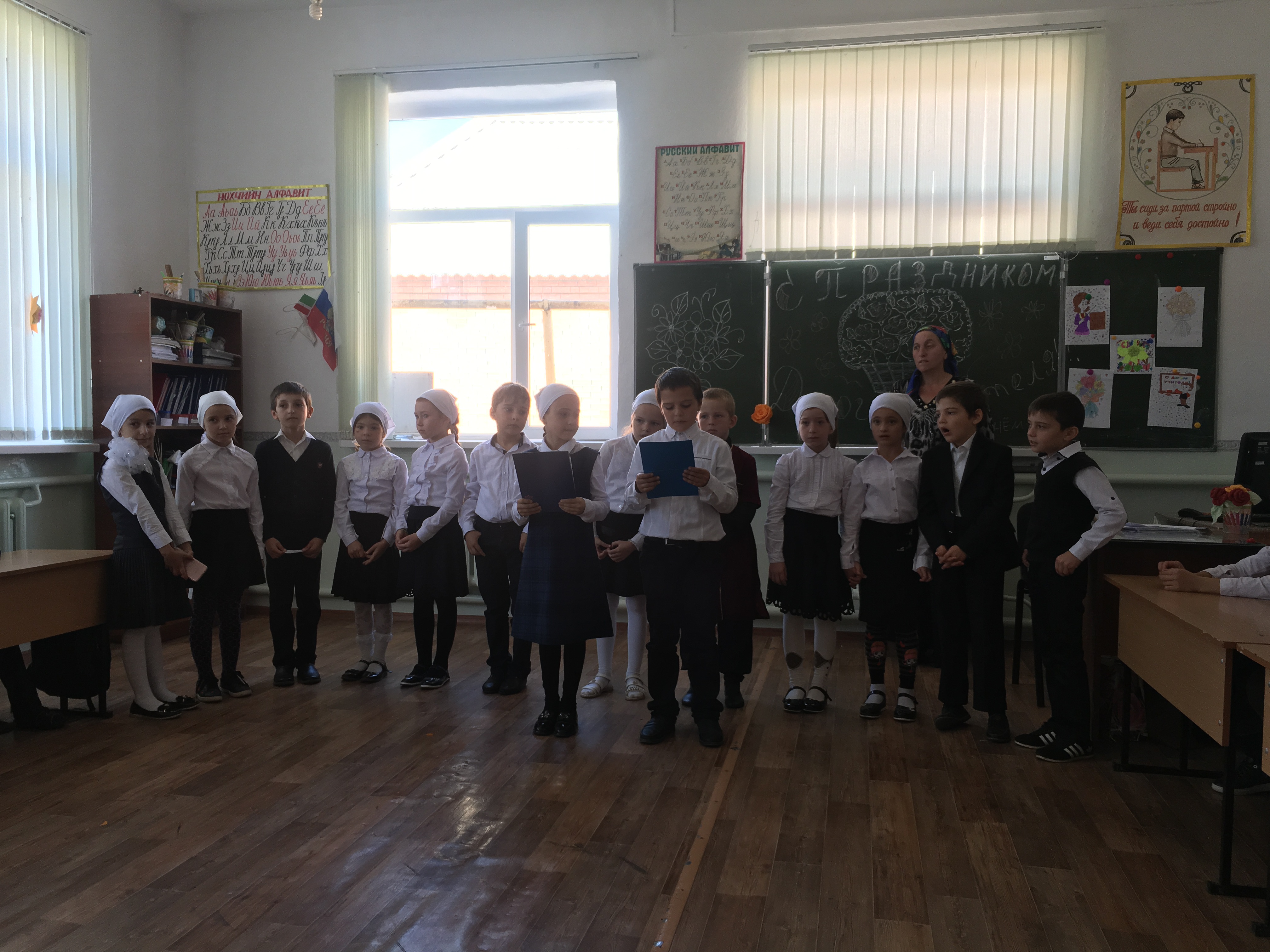 05.10.20175 октября в МБОУ "НОШ с. Серноводское" прошло мероприятие, посвященное Дню Учителя. Учащиеся 2-4 класса посвятили свои выступления любимым педагогам. Итог праздника подвел директор школы Дунгурова Х.У., она поздравила своих коллег с профессиональным праздником, пожелала удачи, счастья в личной жизни.