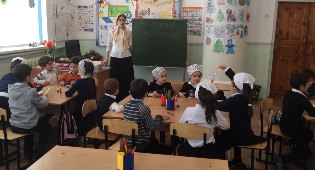 В МБОУ "НОШ с. Серноводское" Сунженского муниципального района по профилактике наркомании была проведена беседа "Нет наркотикам!"