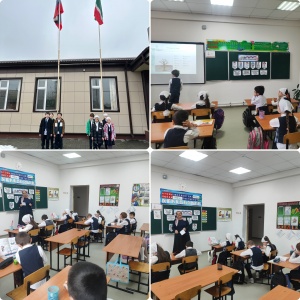 10 марта 2025 г. в нашей школе прошла торжественная линейка, которая началась с поднятия Государственных флагов РФ и ЧР и исполнении гимнов.