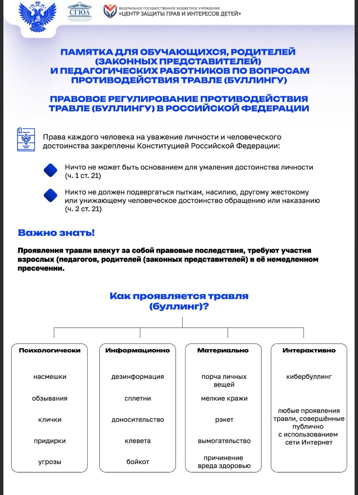 26.04.2025Памятка для родителей (законных представителей) и педагогических работников по вопросам противодействия травле (буллингу)