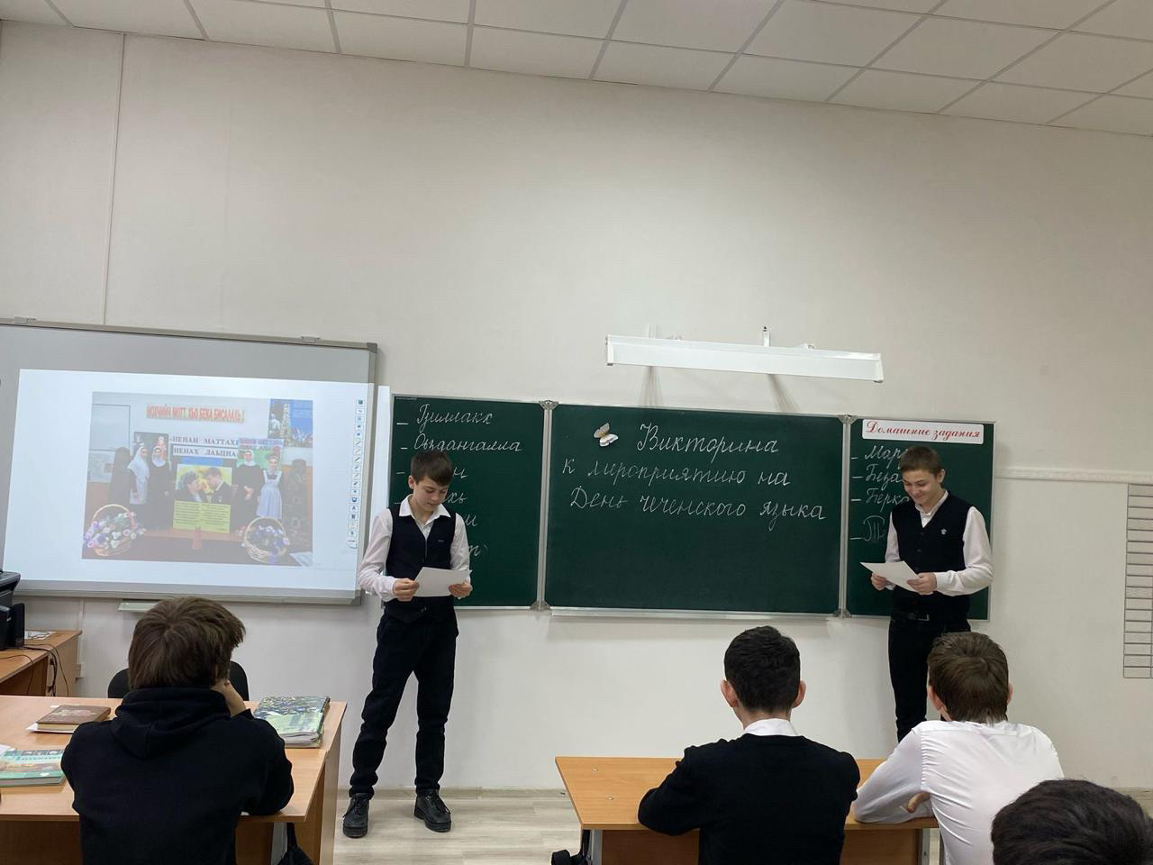 22.04.2025 г.В МБОУ ,,СОШ ст. Ильиновская,, учащиеся 9 классов совместно с юными кадыровцами провели викторину на лучшее знание чеченского языка,посвящённую Дню чеченского языка, на тему: ,,Сан дозалла ,,Ненан мотт,,